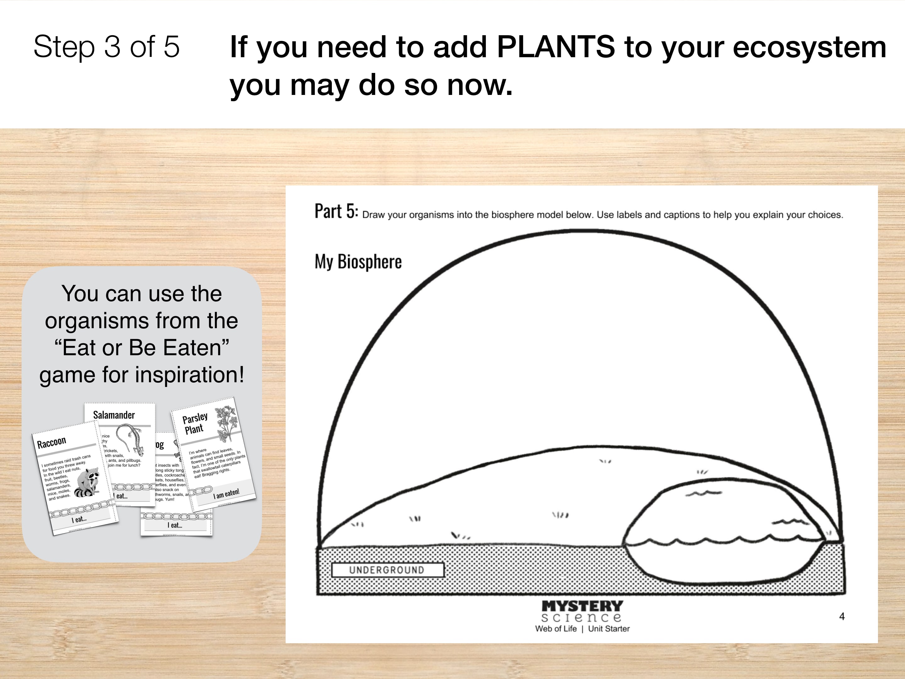 In the next slides you will revise your "My Biosphere" ecosystem.